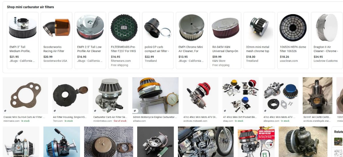 If the Model A doesn't work for you Google MINI CARBURETOR AIR FILTER https://www.google.com/search?q=mini+ca ... efox-b-1-d