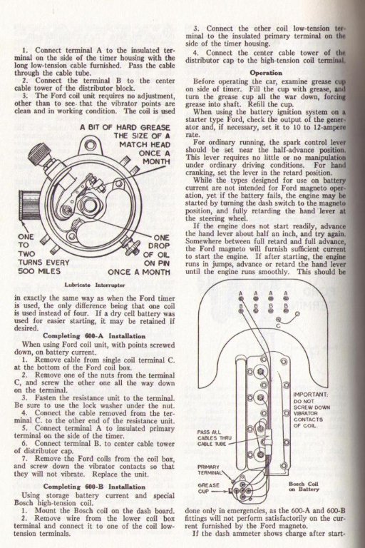 The American Bosch 600 Distributor had several configuration options. One of them would use just one Ford Coil the page 5 instructs how to wire it for 1 coil