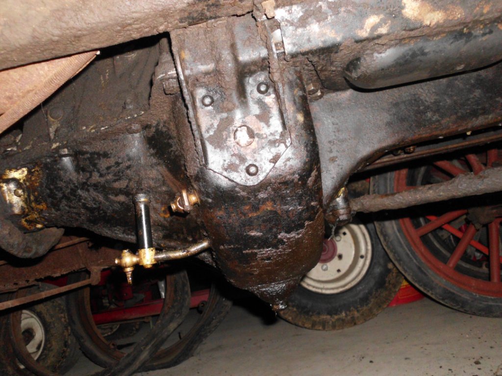 My 1913 engine with casting date in Dec. 1912 has the 3 rivet pan. Second pictures has the aftermarket 2nd tie rod sitting on it that I was testing the fit and did not come with this car.
