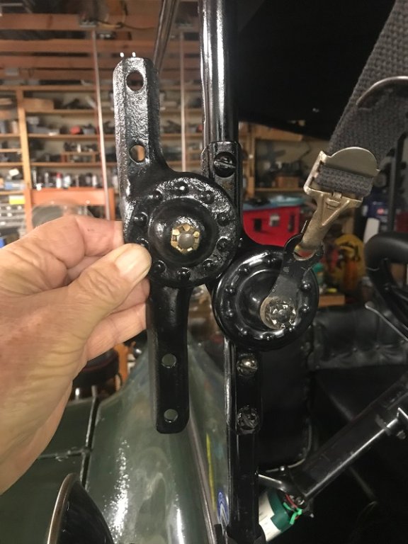 Ford used a lot of different windshield hinges between 1908 and 1927. The usual reference to "even" and "uneven" folding windshield hinges has to do with the straight windshield used on open bodied model Ts (USA built) between 1915 and 1922. The even folding windshield hinges were used on 1915 open cars which were late to market that year due to production delays with the new style front cowling on the open bodies. They folded the upper windshield glass down almost even with the lower glass, with the rear facing hinge pin roughly right in the middle between the upper and lower frames. This setup was not quite satisfactory for most people, feeling it lowered the windshield a bit too low for the high speeds driven back in those days. That design did however continue on through the entire 1916 model year and into the newer black era 1917 model year. With the late start for the 1915 model year, that design was used for basically two years of production, all of the short 1915model year, all of the full 1916 model year, and the first several months of the 1917 model year.