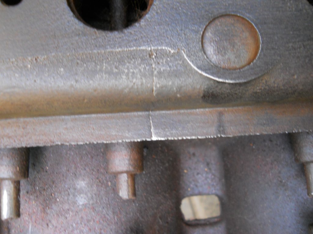 Well did some more cleaning, the crack runs inside the valve chamber right next to the valve stem boss up to the cylinder wall. Oh well it could be worse like this Dodge block I "WAS" going to use. :(