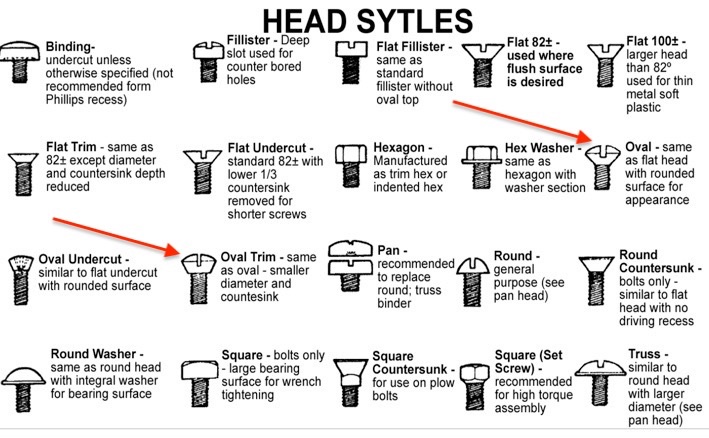 The oval head are correct for Ford metal dash screw depressions, and metal switch** panel depressions.