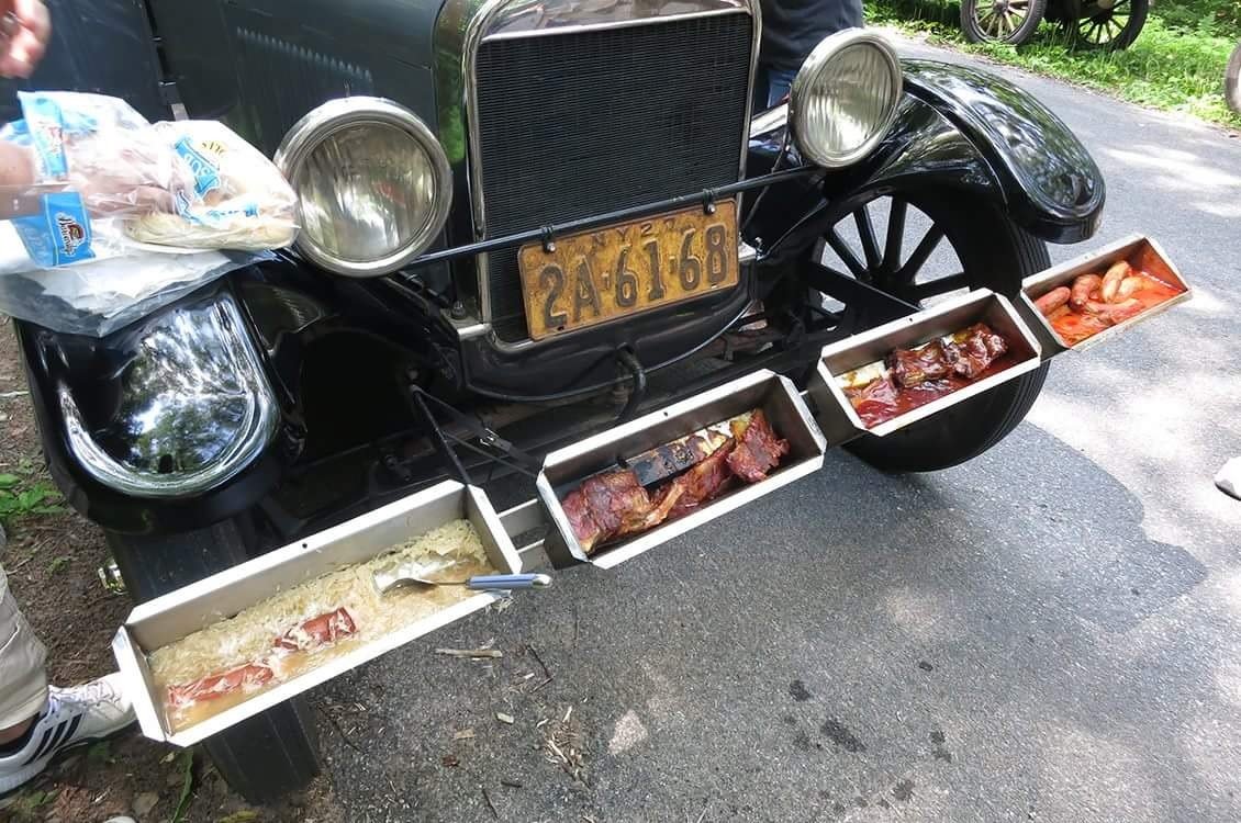 Folks at local drive in car shows are often surprised when I get my meal from under the hood.