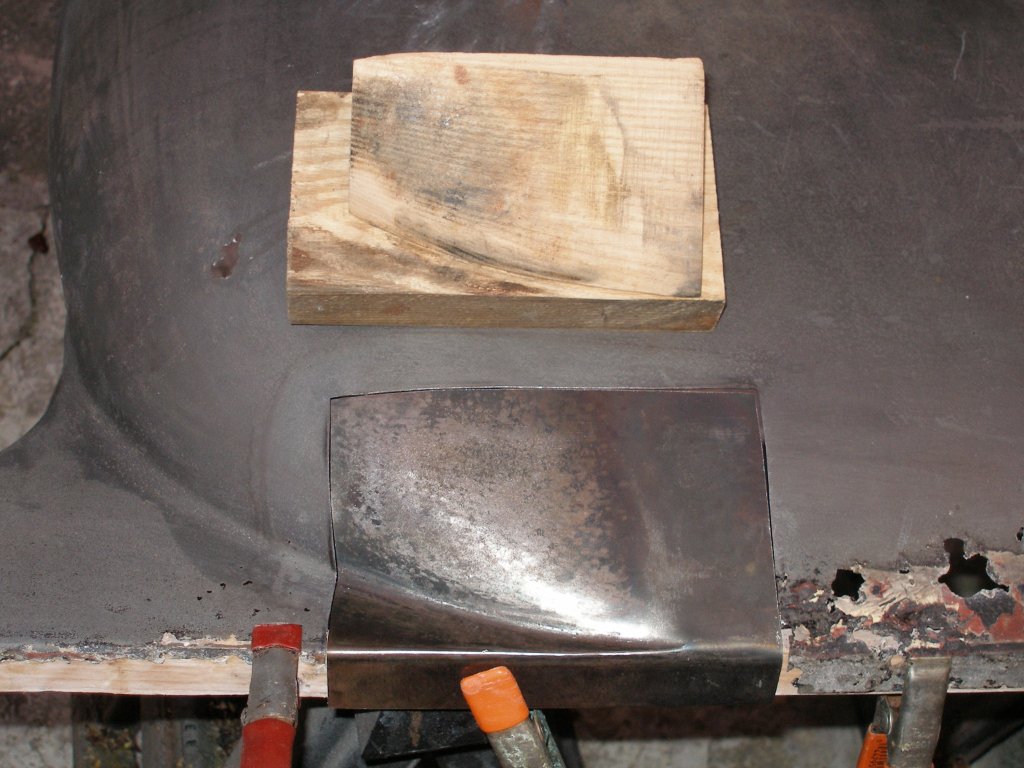 Secondly, there is no one right way to make panels but you may want to 'invest' in a shrinking stump to make some of your quarter panels and the like. Here's one I made recently: