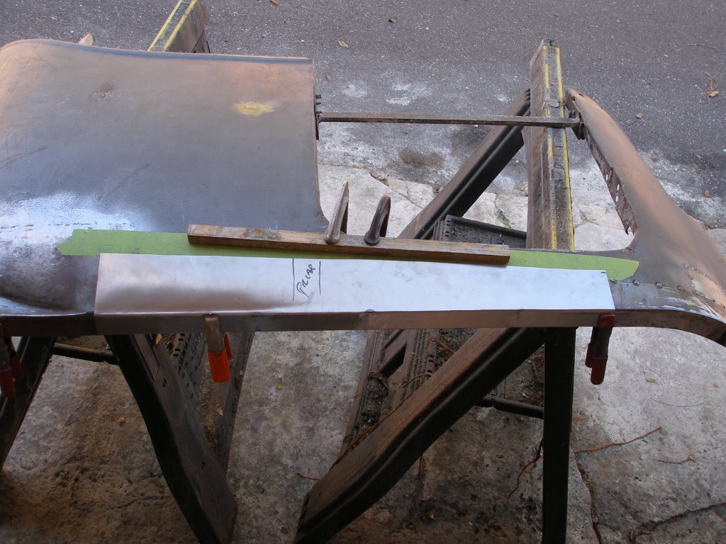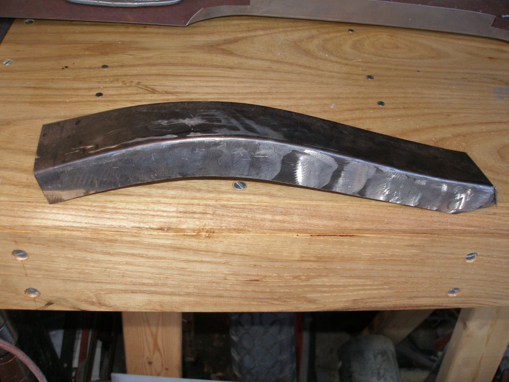 - Sill panels were made with a swager because the folded edge was necessarily not straight. This was followed with a light wheeling and fettling with flat and curved hammer + dolly to get the final shape and fit right.