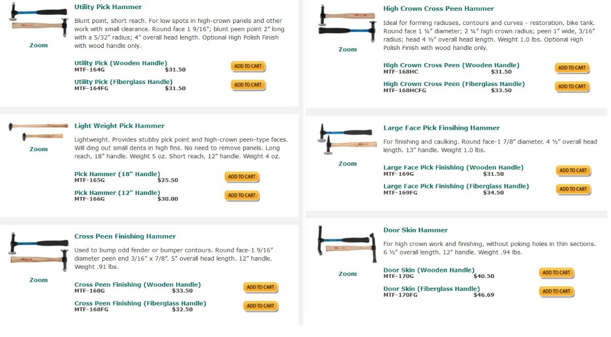 I'm looking to invest in a quality hammer and dolly set (either new, or well maintained used). Whats a good set off hammers and dollys that would be great for T body use?