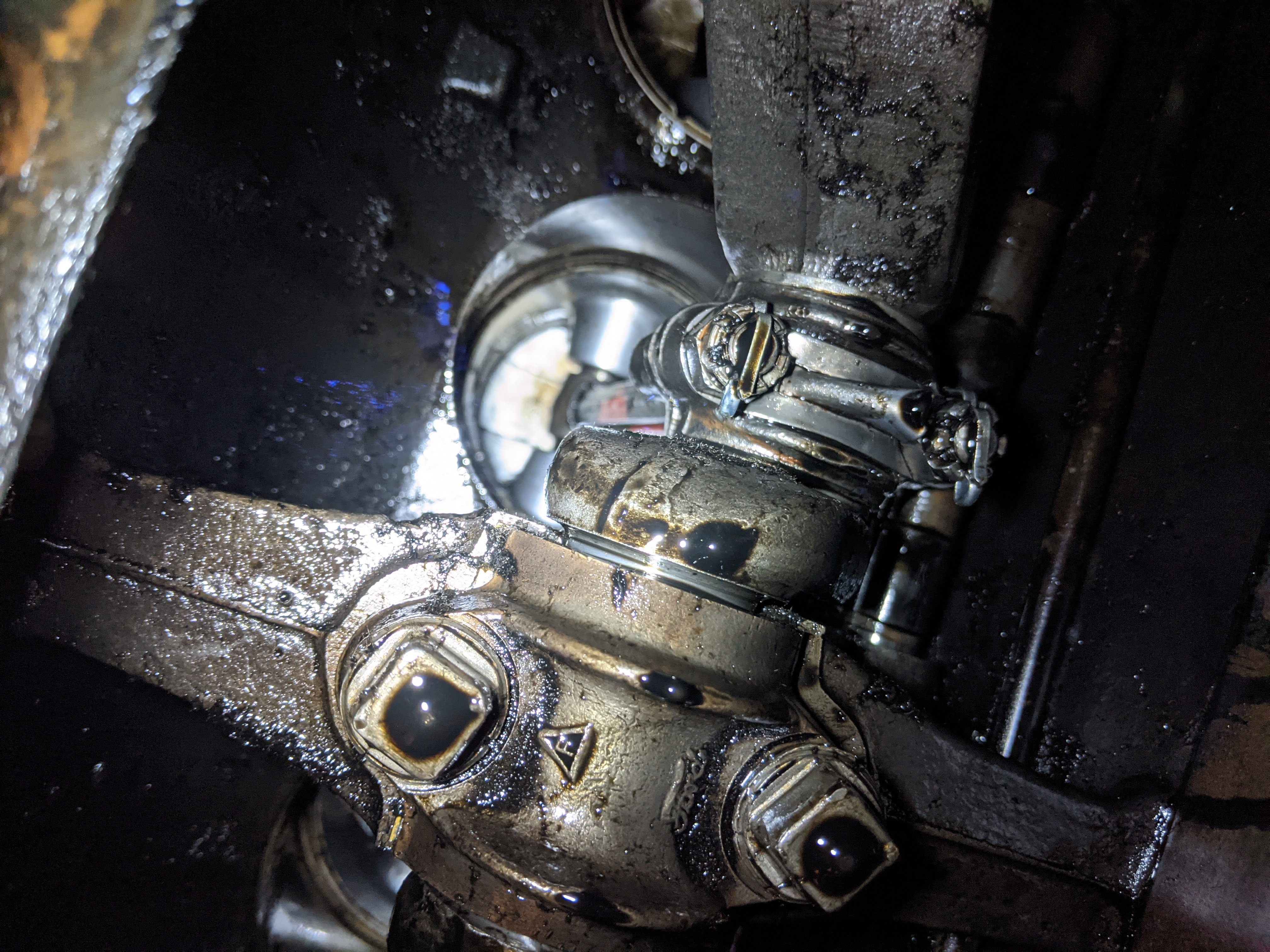so, last night I started tearing the T apart to pull the engine. I figured id better open the inspection plate on the oil pan and take a little look inside to see what damage I'm facing. well, to my surprise, everything to my knowledge looks good. the tie rods on the crankshaft look pretty great and have only slight side-to side play. no up and down, witch I assume is good. there is no sighs of overheating and the timing gears at the front of the motor look to be in great shape. no meatal shreds to be found and cylinder walls are very smooth. there is still oil residue on everything and the dips in the oil pan inspection plate were full of oil. the camshaft looks good too. nothing is obviously warped or damaged at all. as I remember, driving home there was not much noise coming from the transmission or engine that I noticed. no knocking, grinding, pinging or anything out of the ordinary. the motor wasn't trying to seize up or bog down. there was no "hot" smell, however, the hogs head was too hot to touch, almost as hot as the exhaust pipe. I never actually drained the oil to see how much was left, I'm having some trouble getting the drain plug off. I just know it was below the bottom petcock. I think tonight ill start to remove the hogs head and see the damage in the transmission and how bad it is. do you guys think I still need a full engine rebuild or just the transmission?