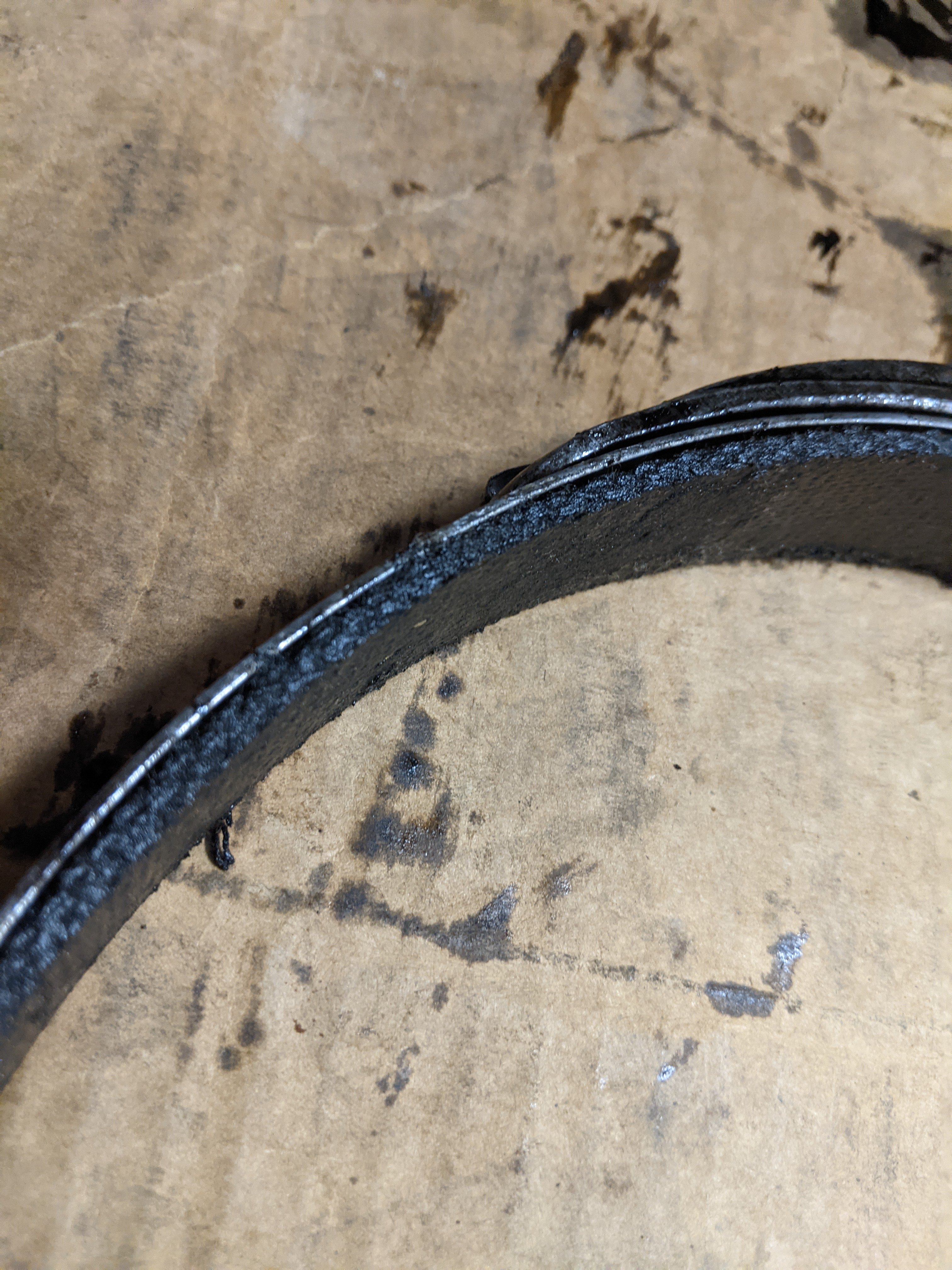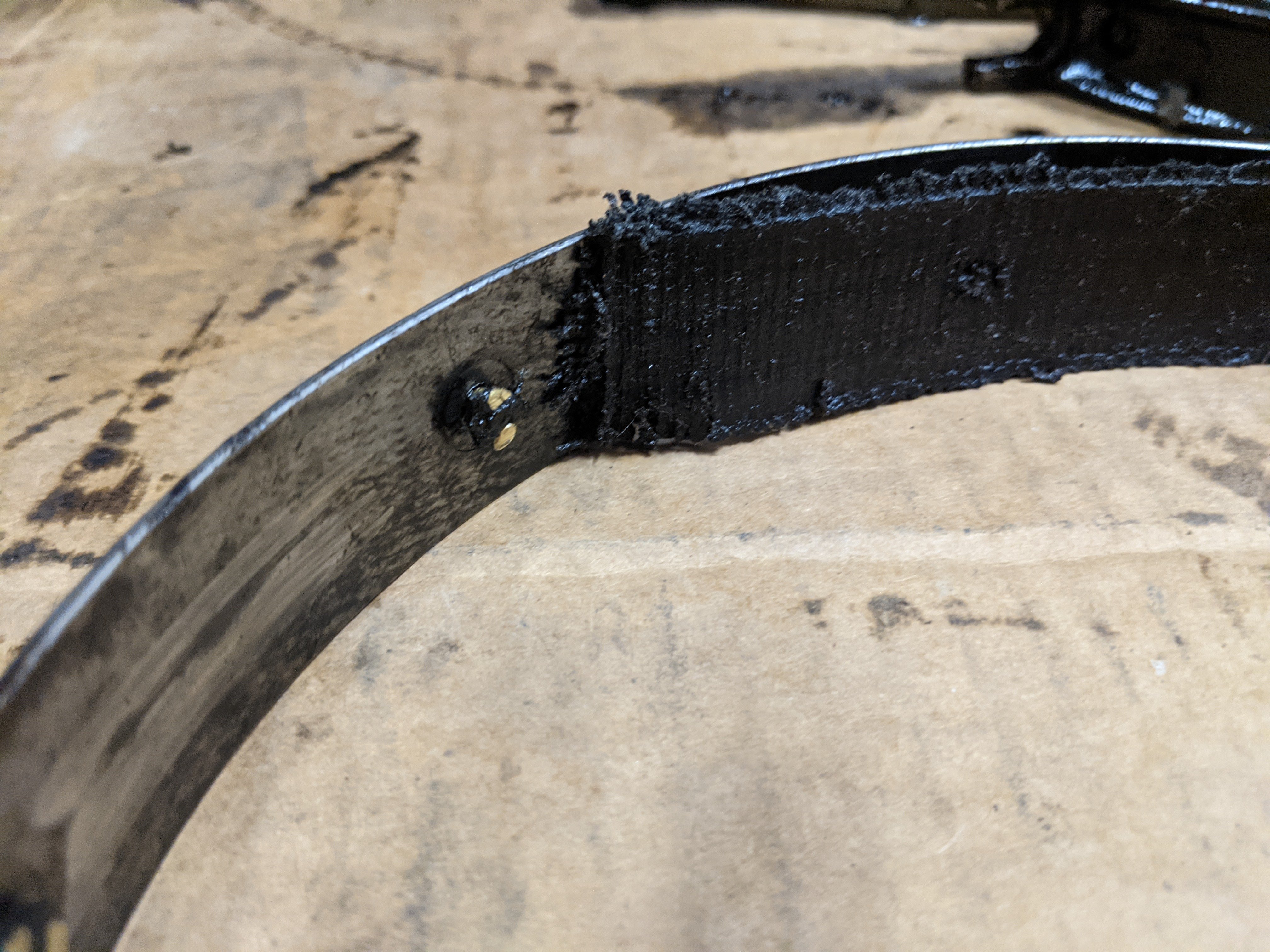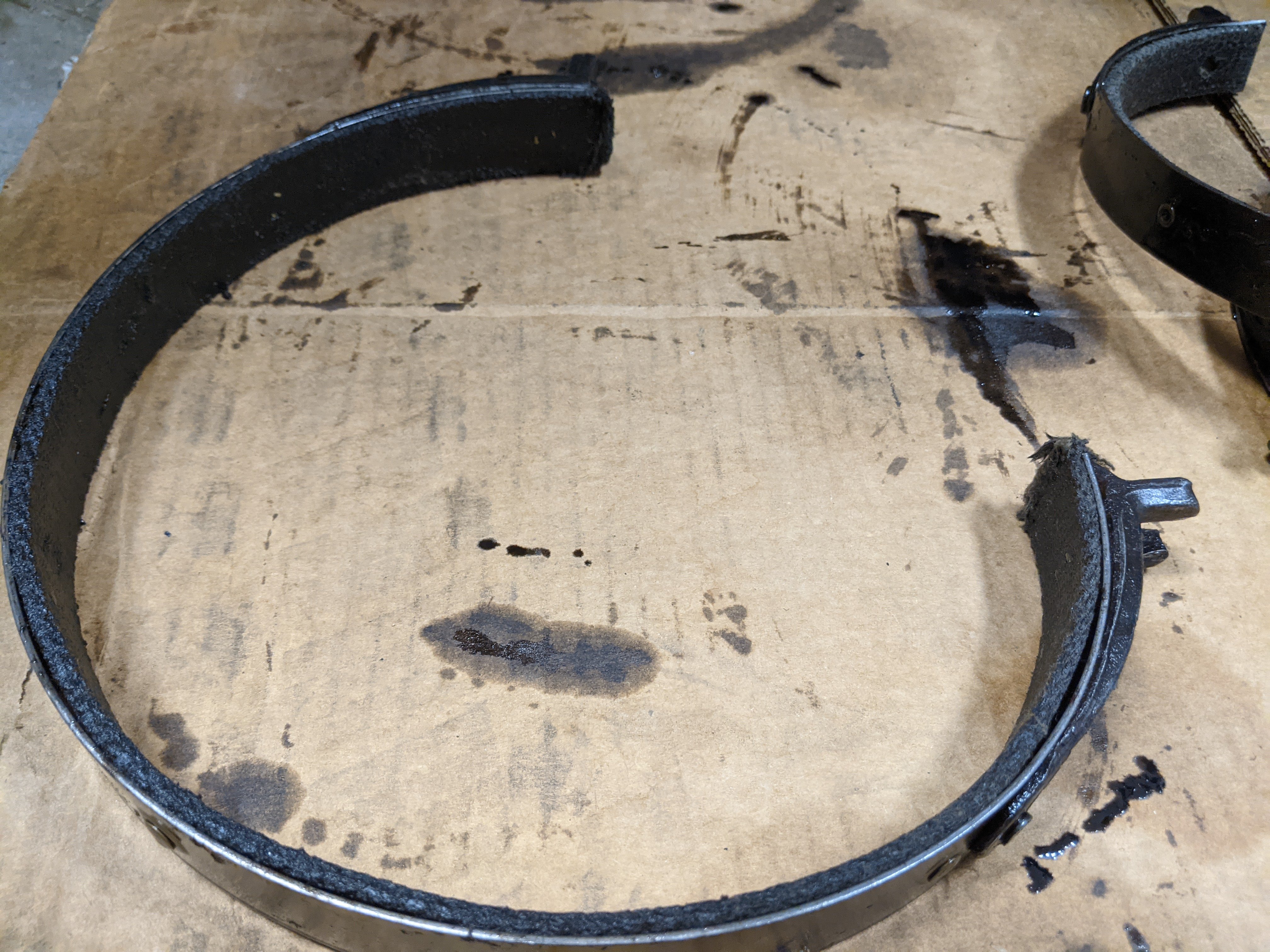 Band lining torn up indicates a cracked or broken drum, so you will probably need to replace at least one of those. An original drum may be OK for a car that isn't driven much, but if you intend to use the car a lot it's probably a good investment to get one of Dave Nolting's new drums. Many original hundred-year-old drums have cracks, sometimes unseen, that can only get worse until the drum goes to pieces. VOE