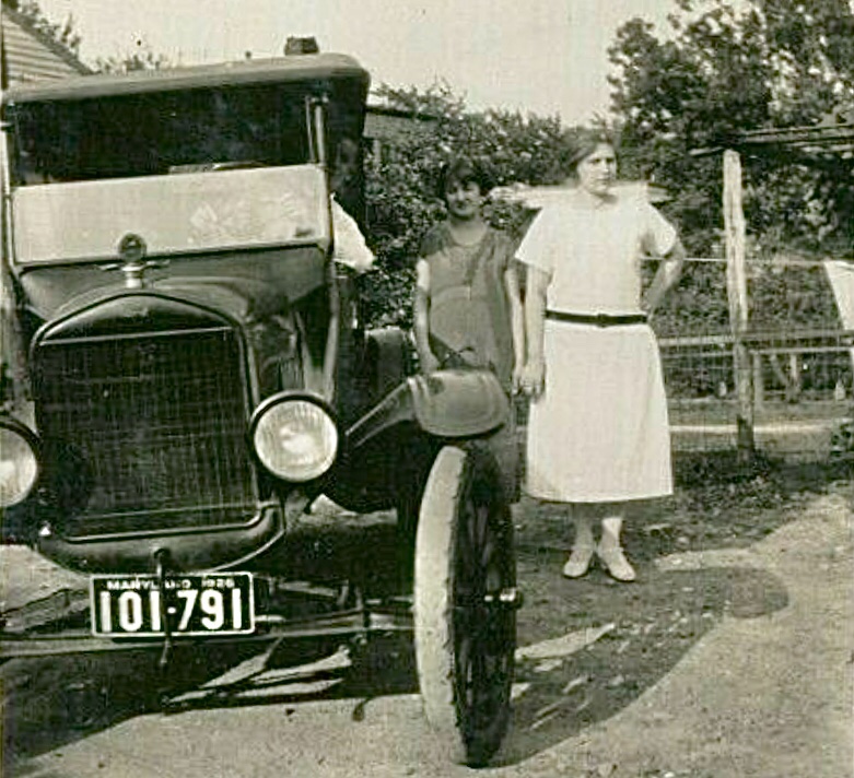 If that’s a Brownie #2, what is this called? It belonged to Lillian, my grandmother. I love the string handle, so well loved. She’s on the left here, pushing her daddy’s flivver with her sisters.
