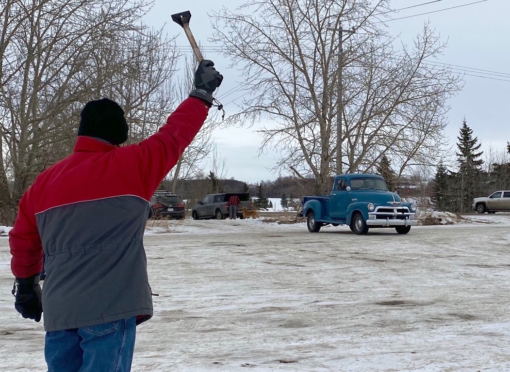 Several local club members have been out driving the oldies a few times this winter. Yesterday four vehicles carrying eight souls went for a 30-mile country drive northeast of Edmonton, AB. The weather was unseasonably mild at 8°C (46°F) and very pleasant for open-air motoring. Roster was my '26 Touring, Mike's '11 Touring, Bob's '30 Hudson and Ron's newfangled '53 Chev. Danin, Jerry, Ryan and Don rode shotgun.