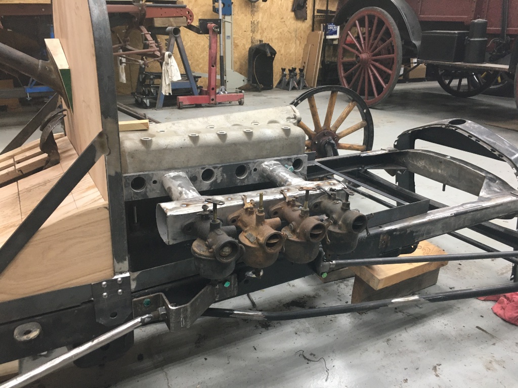 I’m going with the stock pinion for now. But I believe you’re correct I’ll be going with a smaller pinion eventually. As for the intake ( I really should have taken pictures) the inside is baffled. Basically two carbs for the front two cylinders and two for the back. It does have an impulse port on the inside to try to equalize the intake pulses. I’m really not sure it’s going to work. Just an experiment to learn from.Henry K. Lee wrote: ↑Sun Feb 14, 2021 6:20 pmMight want to calculate your final drive @ 55 mph to engine RPM (1750 RPM flat head), (2000 RPM overhead) is in the sweet spot. Possible 10, 9, 8 tooth pinion gear would get you there depending on your outer circumference of the tires being used. You will need a lower support coming from the top of the oil pan attachment bolts to help support the extra weight from that intake combo. They like to rip out with all that mass. You have a lot of intake volume there too, do not know what method you are using to calculate volume (manometer pressure?)or are you installing "Chokes" and going for appearance? Looking interesting Cool!