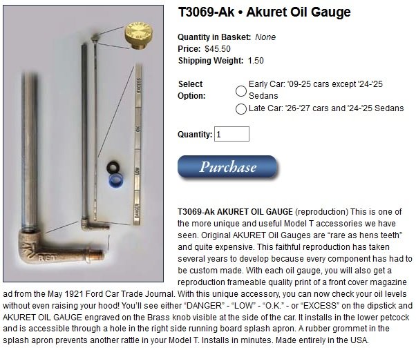 I just ordered one from Tom at Antique Auto Ranch. I'm very glad to have another one of these dipsticks on the way. The one on the '23 has been very useful and makes a painful job completely painless. I'll install it with the next oil change.