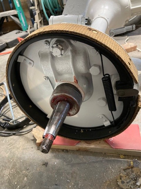 1b...I would pull the brake rod clevis pin to allow the brake shoe cam to centralise.