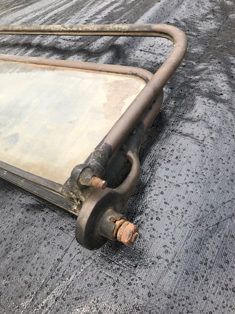 Well, here are some more pictures on the hinges on the windshield in question. From the drawings posted above, the tongue and groove pieces look identical to the Troy. It’s probably safe to say it it a Troy. It has to be fairly early, it has the studs for the windshield braces. I am pretty sure this came off of an early T or at least it was on one at one time whether it belonged there or not.