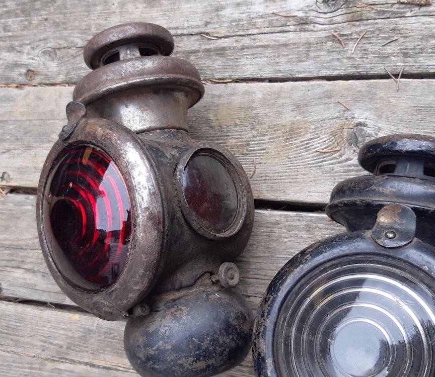 The brand is Classco, an abbreviated form of ........Stamping Company, and they are common on our Canadian sourced cars. The one with the brass top and door may be an earlier 1915 one. We need to see the shape of the reflectors inside the lamps to be sure. The round 'divers bell' reflectors were only on the early lamps, and these are more valuable than the much more common square reflector types.