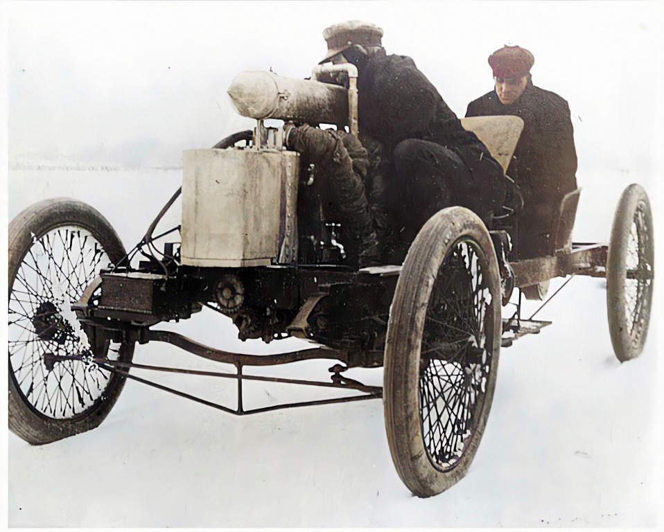 The racer has become lower and more powerful than before. It will go through one more iteration by 1907. Below, in January 1906 at Ormond Beach: