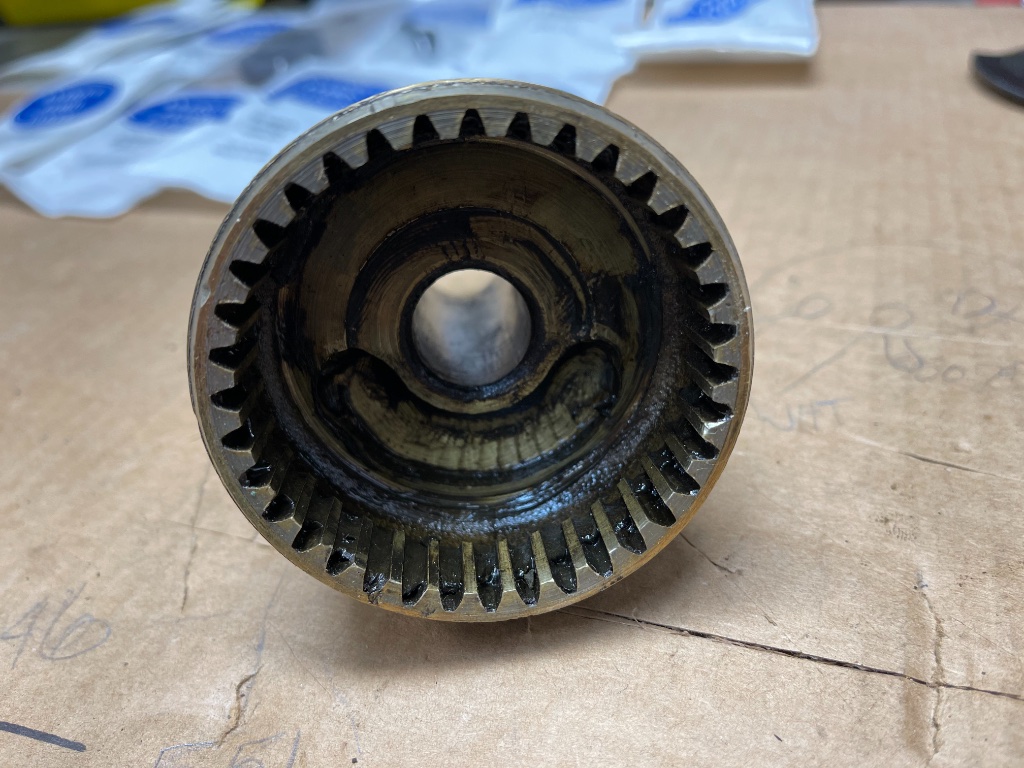 I will clean it up and start to reassemble. I’m waiting on a new shaft from Mark to get here. Old one could be welded up and turned down, which I may do as a later project. It’s chewed up pretty good near the bottom.