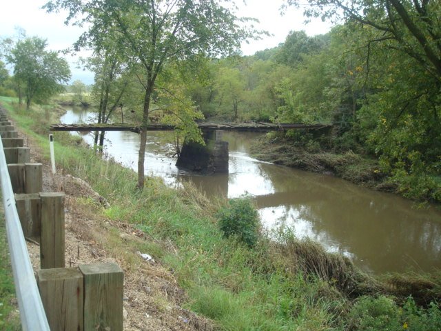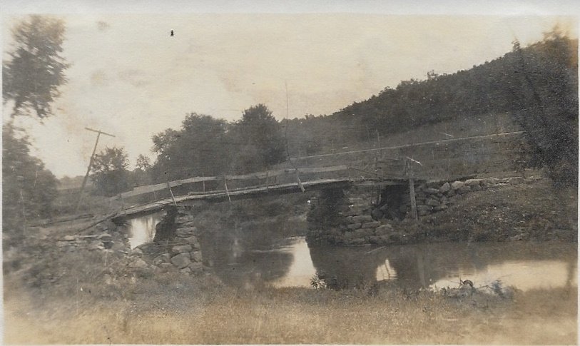The replacement bridge at the same spot, exactly one hundred years later, Sept 13, 2016. Stone from the original supports still lays along the river bank.