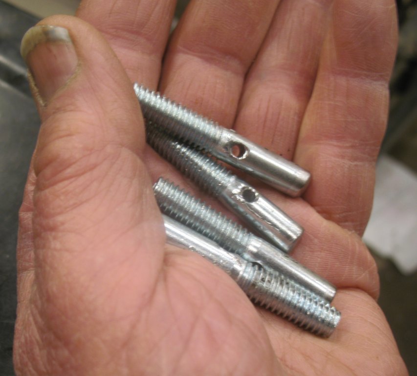 Wires through the studs hold the horseshoes close enough for the cap screws to reach them.