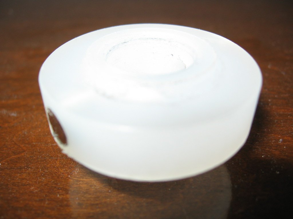 A closeup picture of the white plastic, a reference dimension, notch and pin hole relative positions to magnets and rotor shaft, number of magnets, rough sizes, that they are rare earth neodymium, flush, and type of NS polarity pointing outwards to a needle compass ! I can now Make it !
