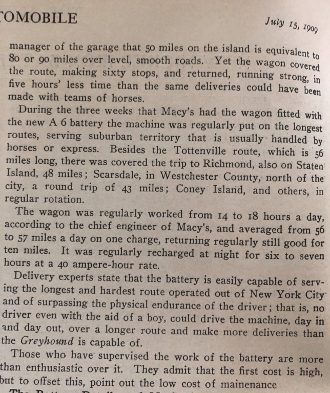 In 1909, the year of Edison's new battery, only handful of commercial trucks were battery powered, and at this New York show, no electric passenger cars were shown, same show that displayed the new Model T Ford.