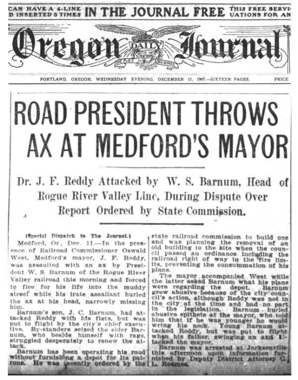 In January 1910, Dr. John F Reddy is acclaimed by a wealthy railroad builder to be the "biggest booster" of Medford. Dr. Reddy, who owns the Nash Hotel, is building a new hotel, as well as continuing to invest in mining and orchards: