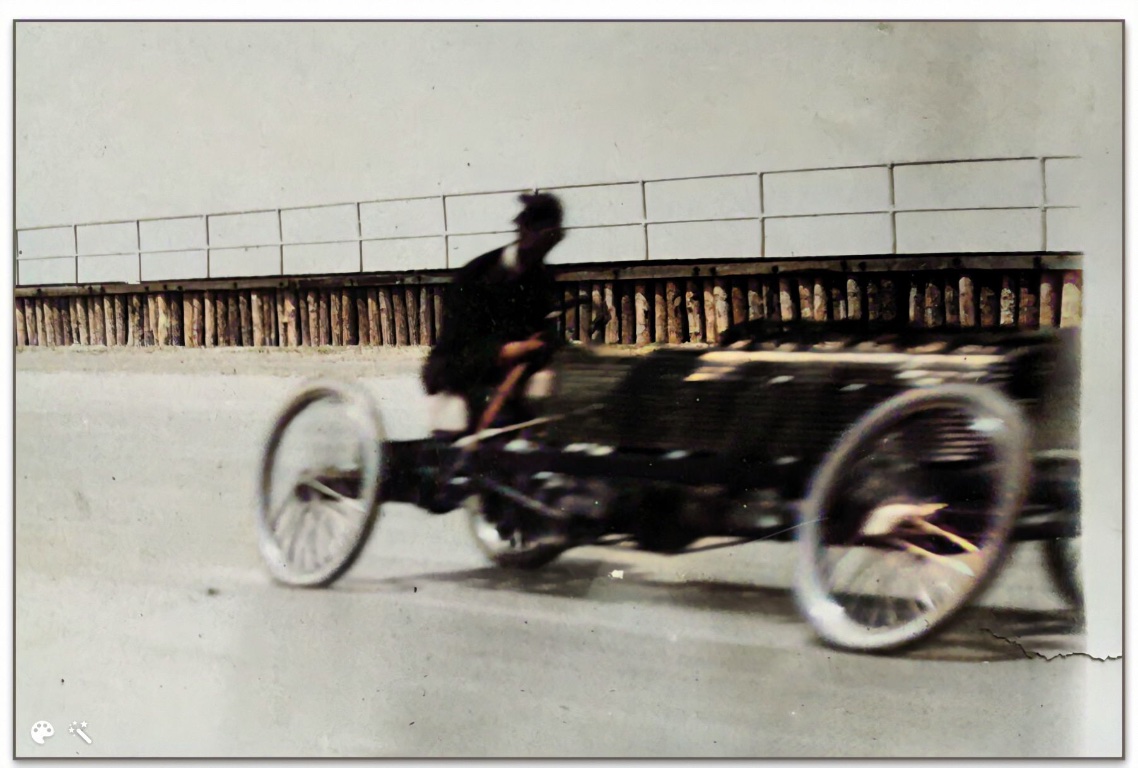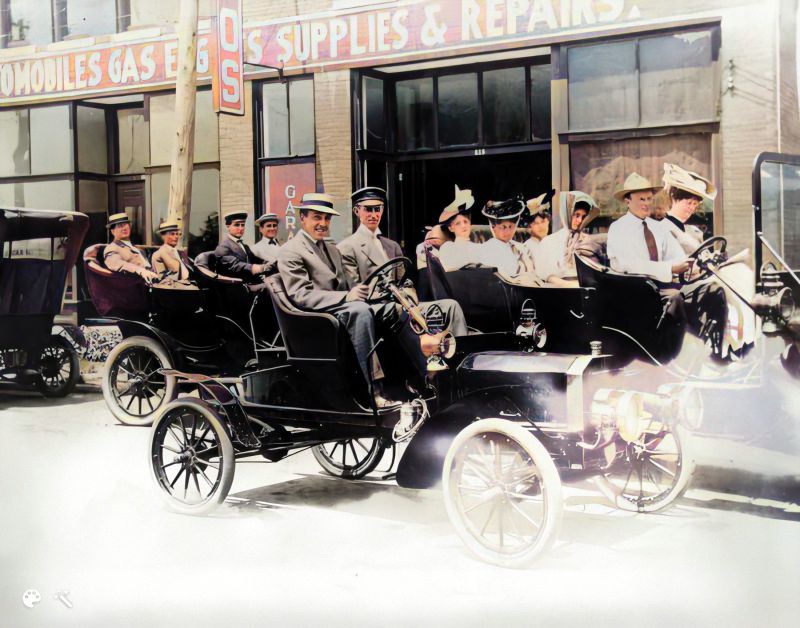 Switching gears, a colorized photo of a Detroit Automobile Co. delivery car. This was the first automotive company Henry Ford was affiliated with: