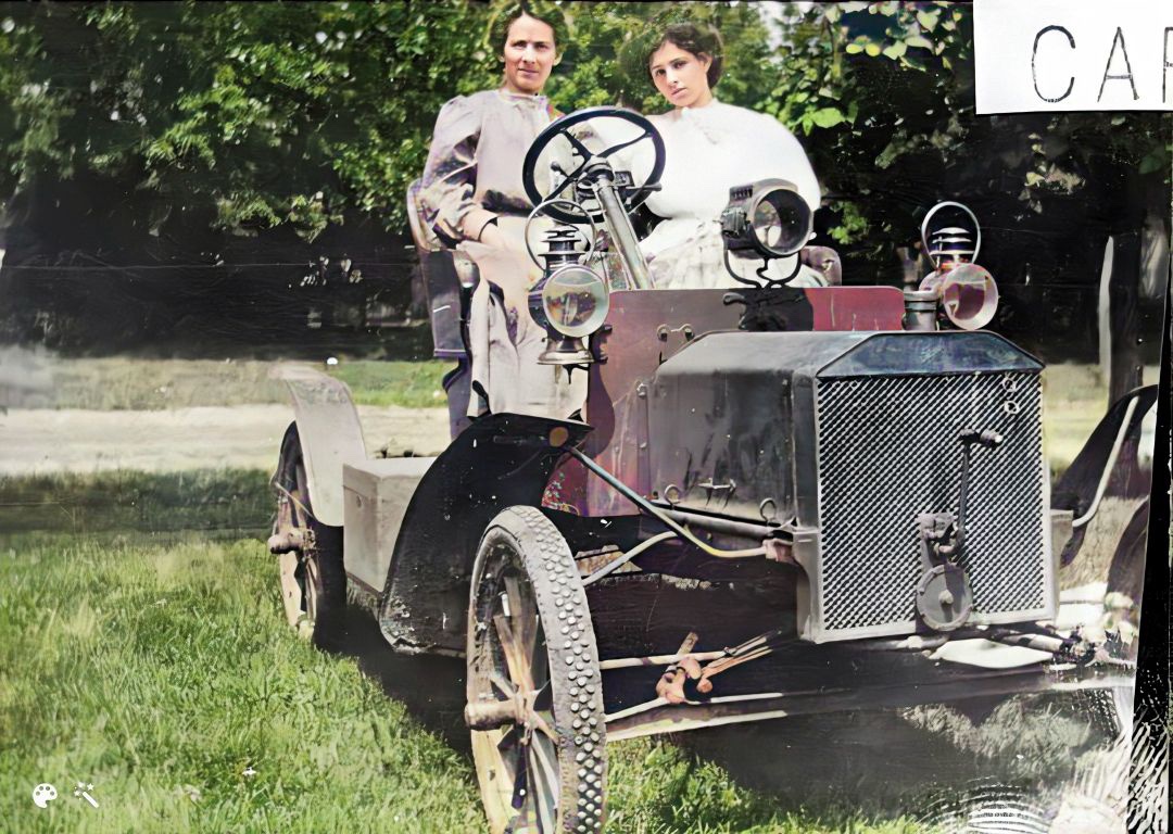 In the 8th picture with the 8 women on that car, there are 3 sitting on the top which is down. Surprising they didn't break the bows!