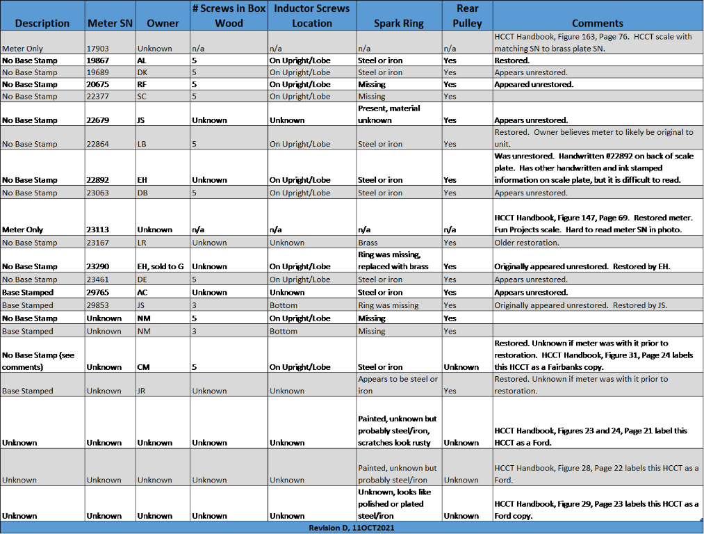 1. If you have an HCCT of this style that isn’t in the above table, please add your unit’s information. If you have an idea that the meter is not original to the unit, please add that too (we have no way of knowing if a meter is original to a unit).