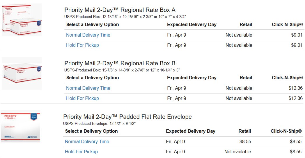 USPS Regional Rate Box A: Shipments of up to 15 lbs. USPS Regional Rate Box B: Shipments of up to 20 lbs