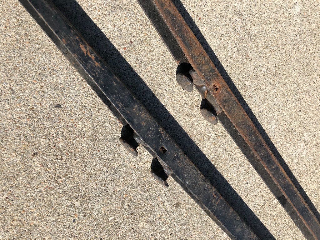 Looks like 45 inches long. About inch square. I attached a couple more photos. There is an “arrow”. I’ll happily give them to anyone. Whatever they are. Thanks