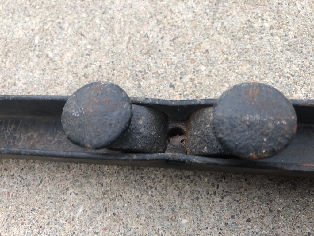 Agree with Hap about a tape or some kind of scale. How far is it between the square carriage bolt holes? Any chance it's the same spacing as T running board bolts? If the size is right, maybe it's a rail to keep luggage off the splash apron and give some cleats to tie a rope to.