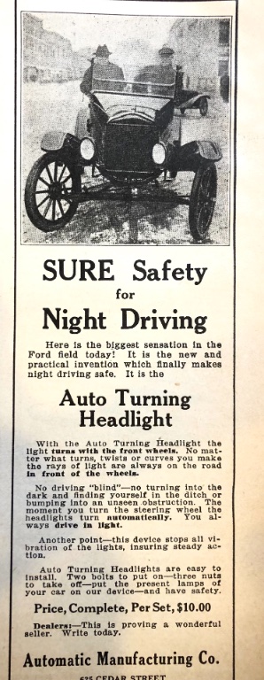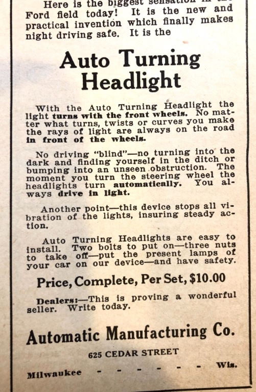 The Model T was the boon of specialized accessories, and self-turning headlamps were among them!