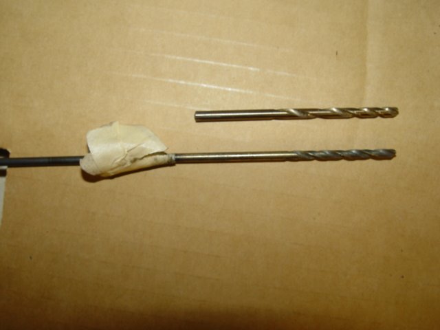 Then I do something that might not be recommended, but makes the beads go in easier. I use a 9/64" bit on the inside of the valve stem. I use a standard length bit and have just 1/8" held in the chuck. It wouldn't seem that 1/64 " extra would make any difference, but it cuts brass on the inside of the stem, maybe not a good idea. But, that is how I do it.