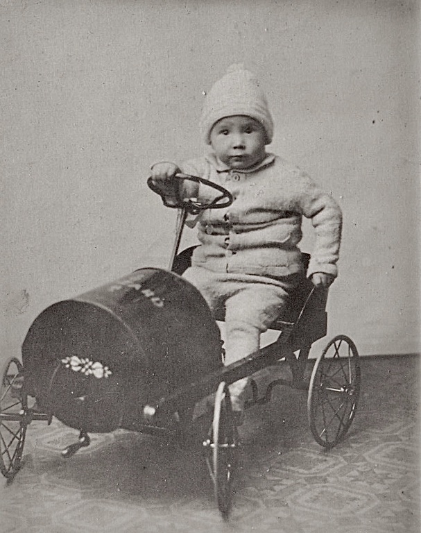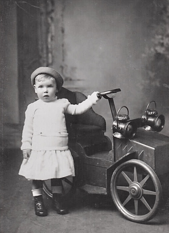 Here is a picture of my mother and her brother with a toy car taken around 1941 or 42.