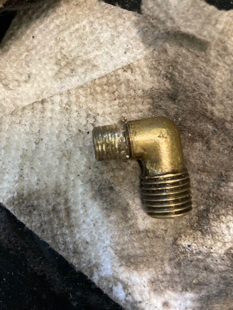 Having to re-tap the thread in the carb body may be a blessing. Just clean it up first and fit the new elbow. If you have thread still showing, but the elbow is not pointing in the right direction, you can re-run the tap to let the elbow run in a little futher. It may take a few tries to get it to pint to the rear as it should.