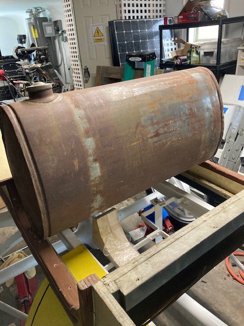 I am going to have to figure out a way to lift the gas tank to fiddle with the battery. The floorboard to be built for the gas tank I plan to lift up from the battery box (drivers) side but a rigid fuel line will be a problem. So either something I can temporarily remove like a outboard motor type fuel line clip or a flexible fuel line that will move with the tilt? Does that exist for T? The tank outlet is the same side as the cap so if it is on the passenger's side it won't move much on tilt up but it will have to move. Also some sort of rod or stand to keep it tilted while I fiddle with or replace the battery?