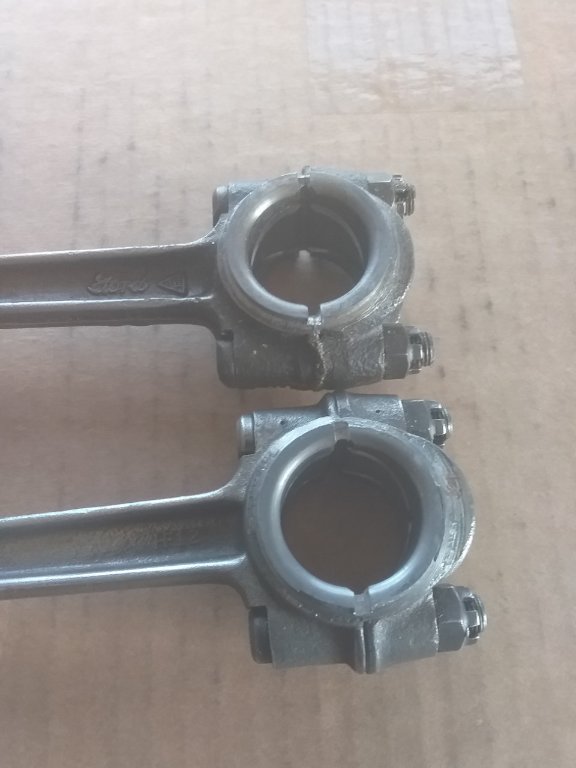 i have some "mystery" connecting rods to identify ... they are the same dimensions as Model T , EXCEPT for the wrist pin ... the photos will show that detail ... all other dimensions are the same as Model T ...the wristpin is bushed with bronze bushing .750" diameter ...