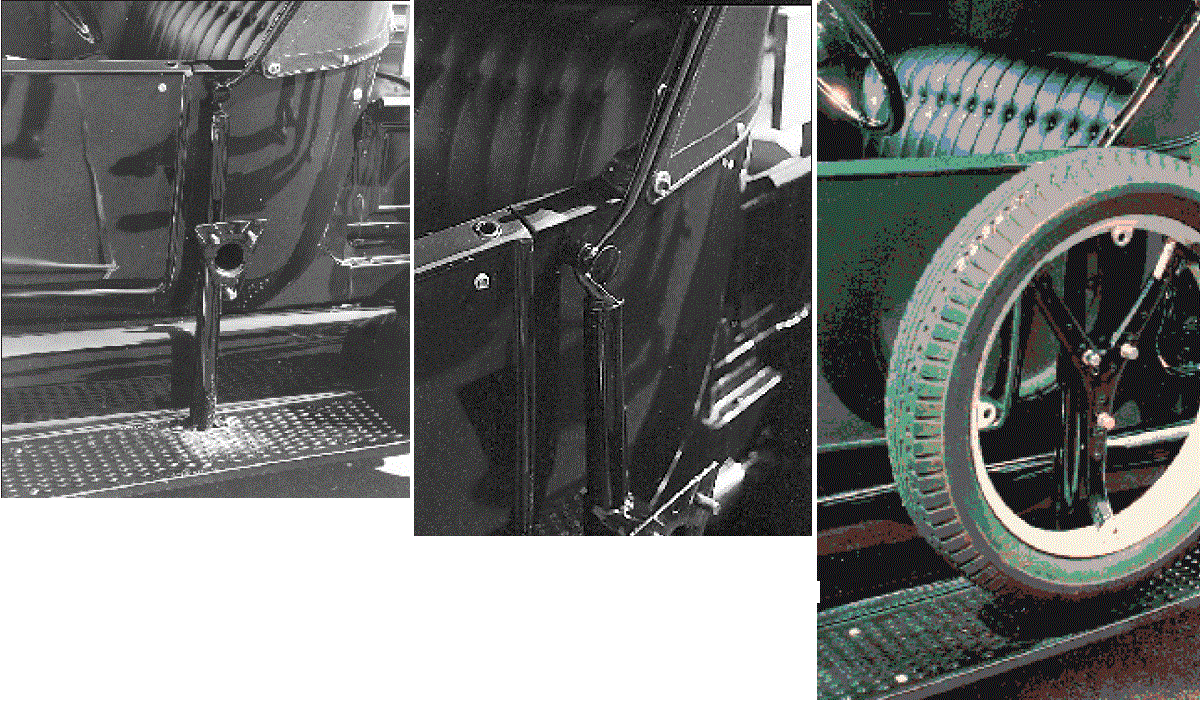 My 1927 Roadster Pickup was apparently ordered with the running board spare tire mount. I'm not sure this was a great idea as it makes the driver side door useless.