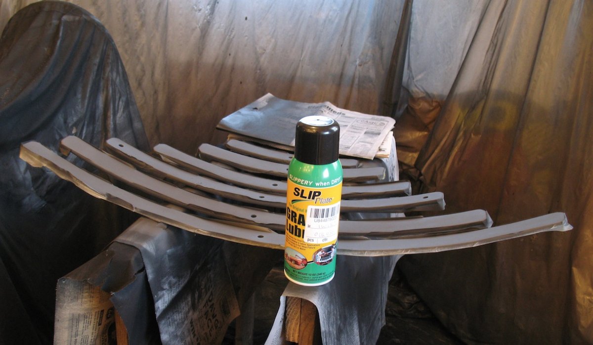 Painting springs some folks paint the whole unit assembled. I paint all the parts separately and apply slip plate on the bottoms of all leaves except the main one. I use phosphoric acid metal prep and paint with satin black rattle can Rustoleum. Some prefer glossy. I don't. It needs no primer. It looks good and is very durable.