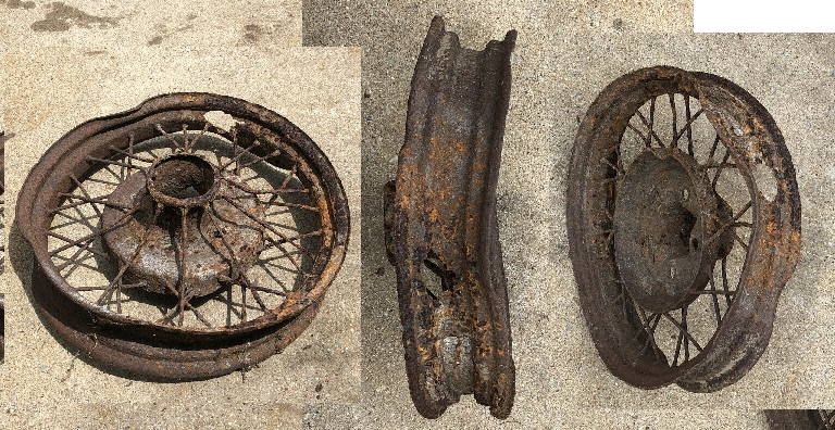 Do not be fooled. That is a Model A wheel. Model T wire wheels don't cost that much.