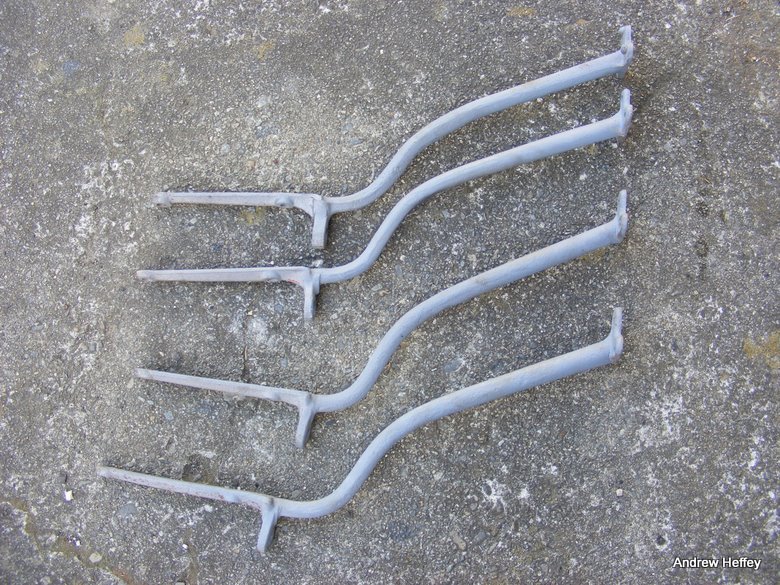 The lug for the truss rod is also heavier on the early type, as is shown. Also, the underside of frame mounting on the early ones is concave whereas that on the later ones is convex. They are also different in cross section, the arms being more pear shaped on the early ones.