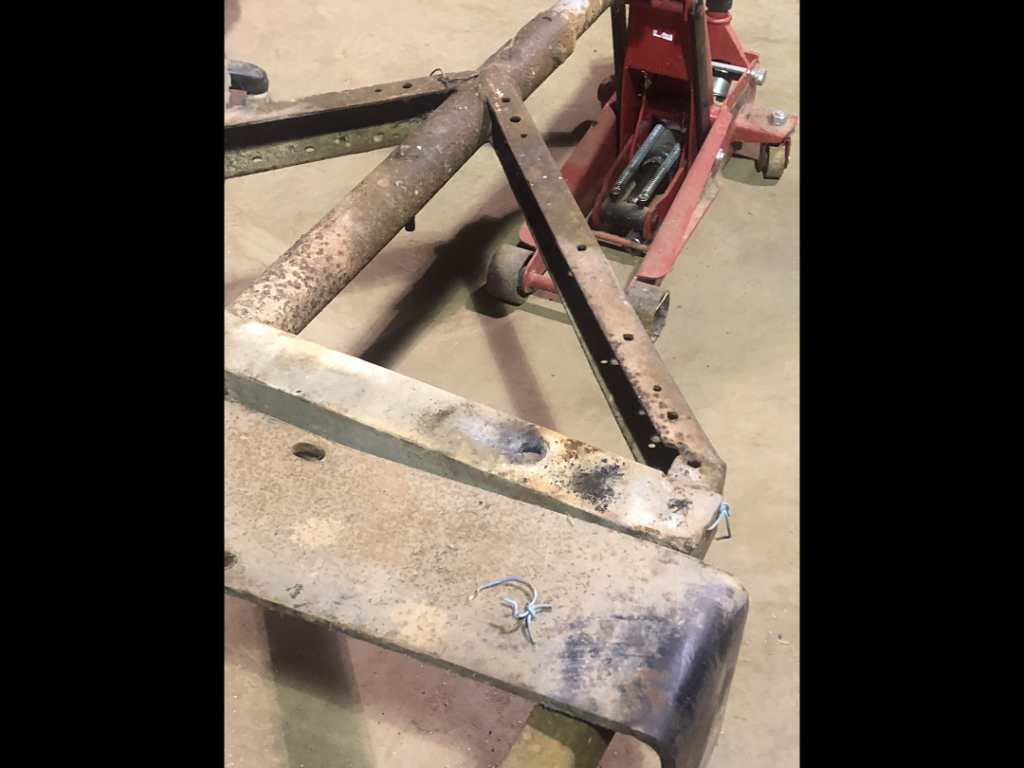 I went to help a friend put a 300 straight 6 to power an irrigation pump on this old trailer he had and it was obvious how it’s life began. It has the holes for the early running board brackets. His trailer for a welding machine is a T frame as well.