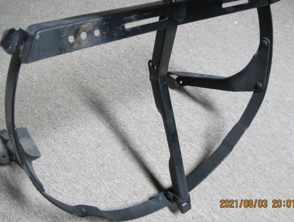 Does anyone know the part number or year variant of this holder . Vertical bar in center has a hand hold area formed in it, when it's vertical the wheel is locked in at the bottom, if you push it forward the lower tab pivots to release the rim, it has a padlock ring at upper end and lug relief areas. Took it off my touring car for clean up.