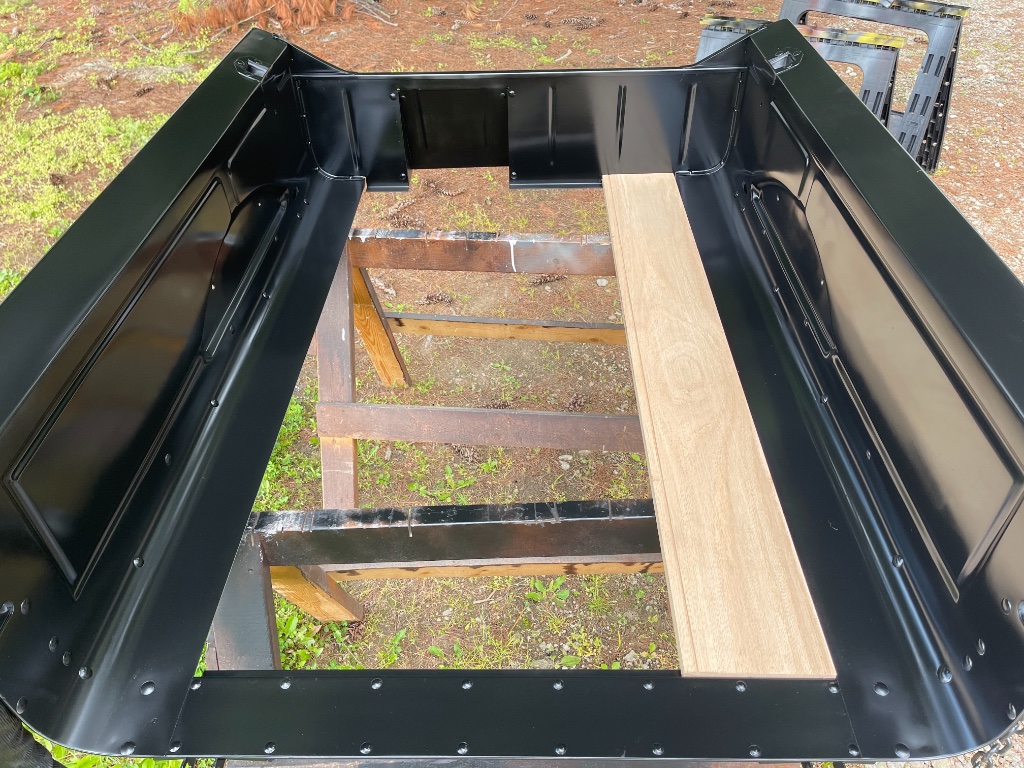 Trying to find a layout of how the wood bed floor is assembled and bolted in. I assume it will be easier while the bed is on saw horses. The wood kit is cut for the battery hatch so what supports the planks that are cut. Is the floor sturdy enough after all is tightened up with the bed strips?