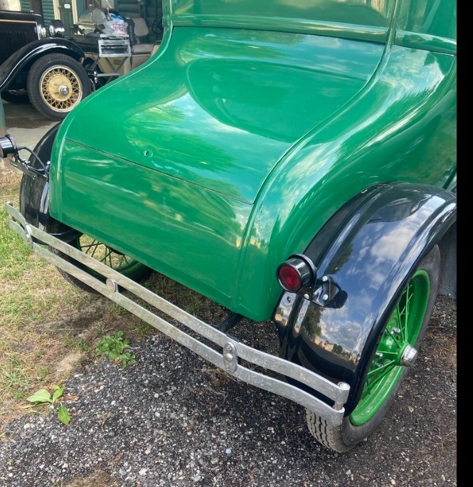 [attachmeI’ve recently purchased a nice little ‘26 coupé, which, alas has been fitted with Model A wheels. It’s also been fitted with bumpers, but the rear bumper is so near the body that there is no room for a spare tire. Is it possible that my machine has been fitted with Touring/Sedan brackets rather than the correct Coupé/Roadster brackets?
