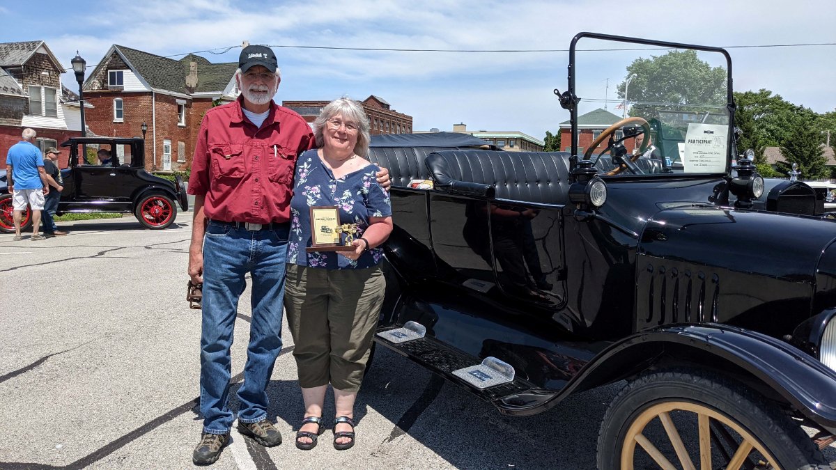 Farthest Traveled: Mike and Tammie Fortney of Oskaloosa Iowa w/ their 1917 Touring! They traveled 489 miles to attend Homecoming this year!