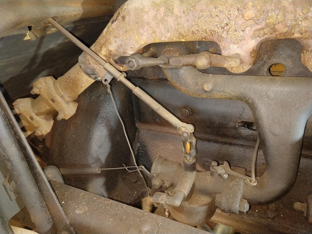 The set up in question has the "wrong" carb. the throttle & choke levers are the long, early type.(20-23) Not really important, but do require a dog leg bent in the choke rod to clear the second front choke rod.