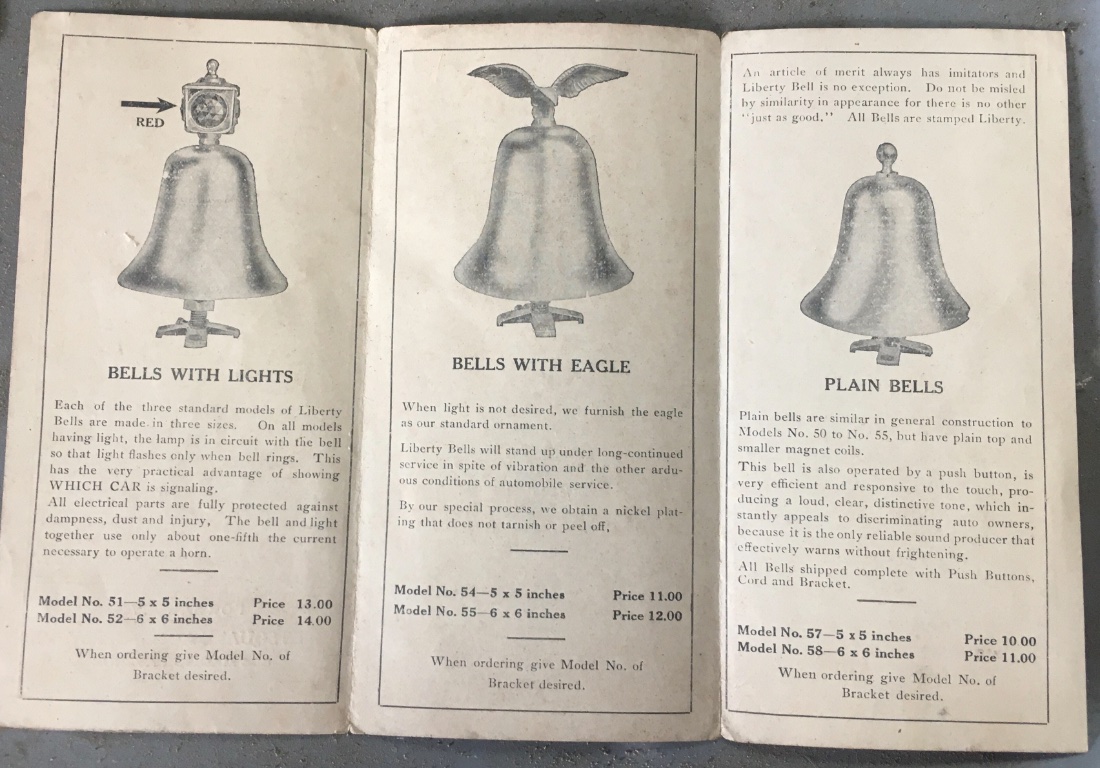 Here a ‘14 with a fancy dress radiator, an American flag on one fender and a ‘Liberty Bell’ signal on the other (with Eagle topper for extra Freedom)