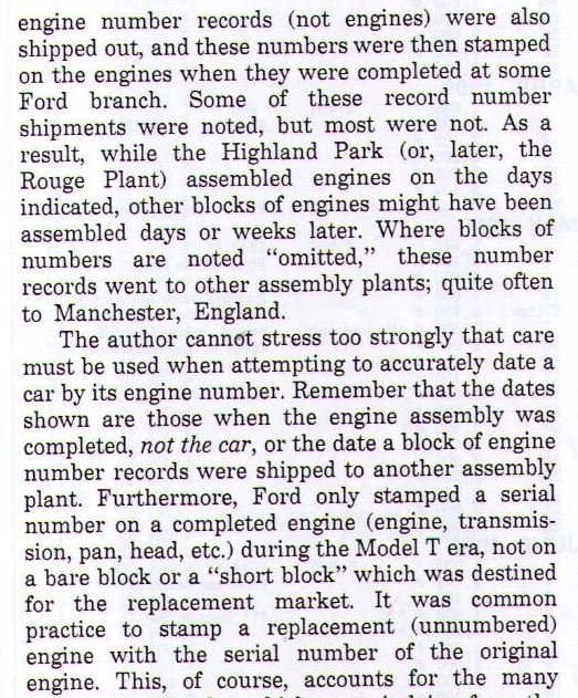 And his serial number listing includes many serial numbers sent to Long Island for stamping on a block there. And on page 515 he shows where the 200 engine numbers that were shipped to Long Island on Jan 7, 1918 were sent back to the the Highland Park engine shop on Jan 16, 1918.